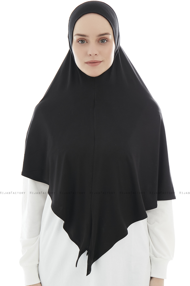 Ajda - Svart One-Piece Hijab Fra Ecardin.Kan bruges som både hijab og turban. Med lynlås på forsiden.