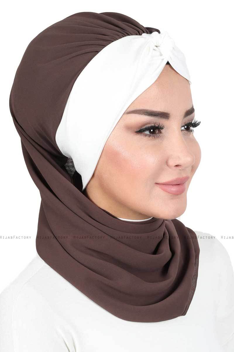 Gill - Brun & Creme Praktisk One-Piece Chiffon Hijab Fra Ayse Turban.