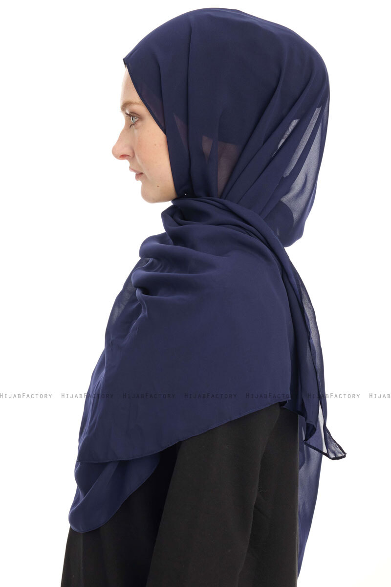 Marine Blå Chiffon Hijab Sjal