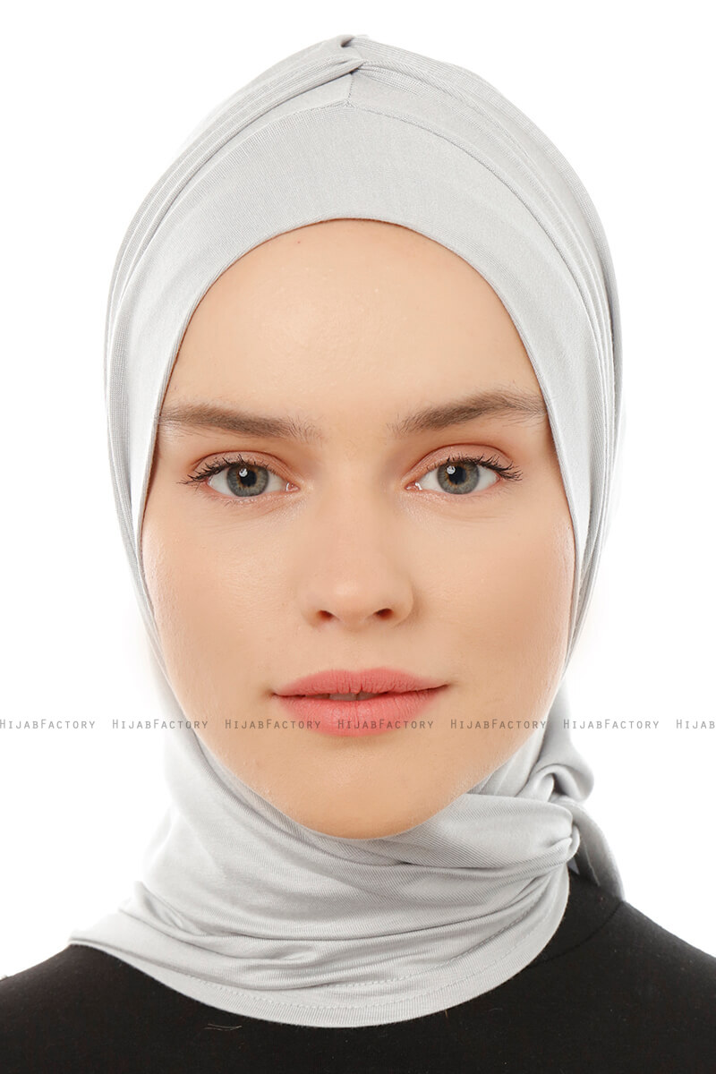 Isra Plain - Lysegrå Praktisk One Piece Viskos Hijab Fra Ecardin I Tyrkiet.