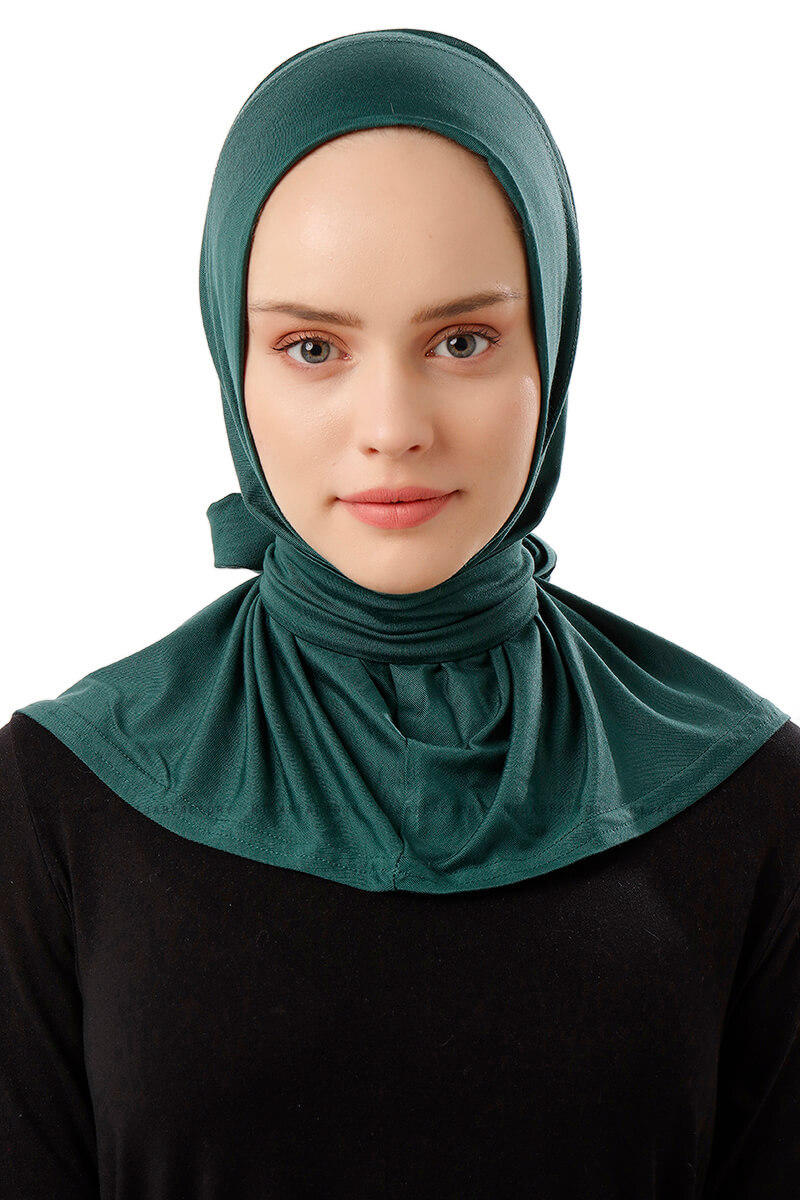 Sportif Plain - Mørkegrøn Praktisk One Piece Viskos Hijab Fra Ecardin I Tyrkiet.