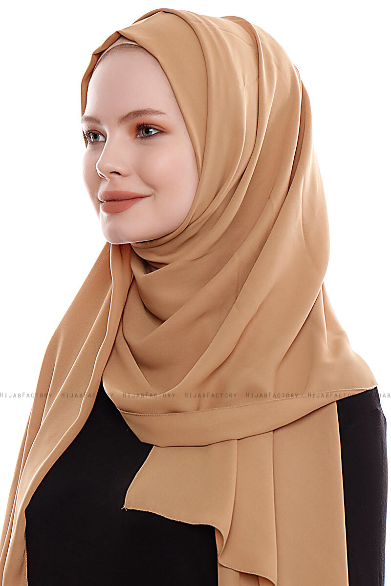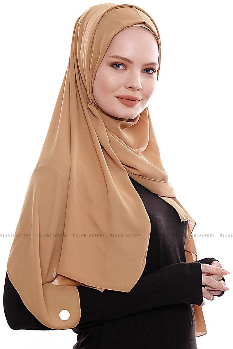 Yara - Lys Karamell Praktisk One Piece Crepe Hijab Fra Ecardin