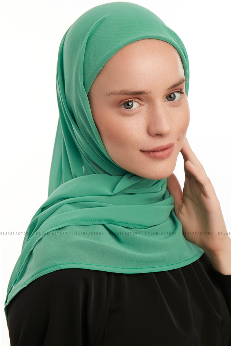 Sahar - Emerald Praktisk One Piece Chiffon Hijab Fra Ecardin.Chiffon-hijab i ét stykke. Med undertørklæde af viskose.